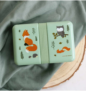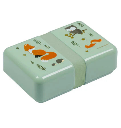 Kleine schattige lunchbox die perfect past bij een drinkfles en rugzak. Hij wordt samengehouden met een handige elastiek, is gemakkelijk te openen en te sluiten (zelfs voor kleine handjes), en biedt voldoende ruimte voor de school lunch. Handwas aanbevolen; niet geschikt voor de vaatwasser of magnetron.