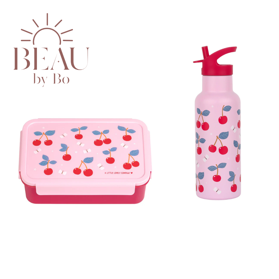 BEAU by Bo A Little Lovely Company Back to school set - Drinkfles XL RVS/Bentobox - Kersen