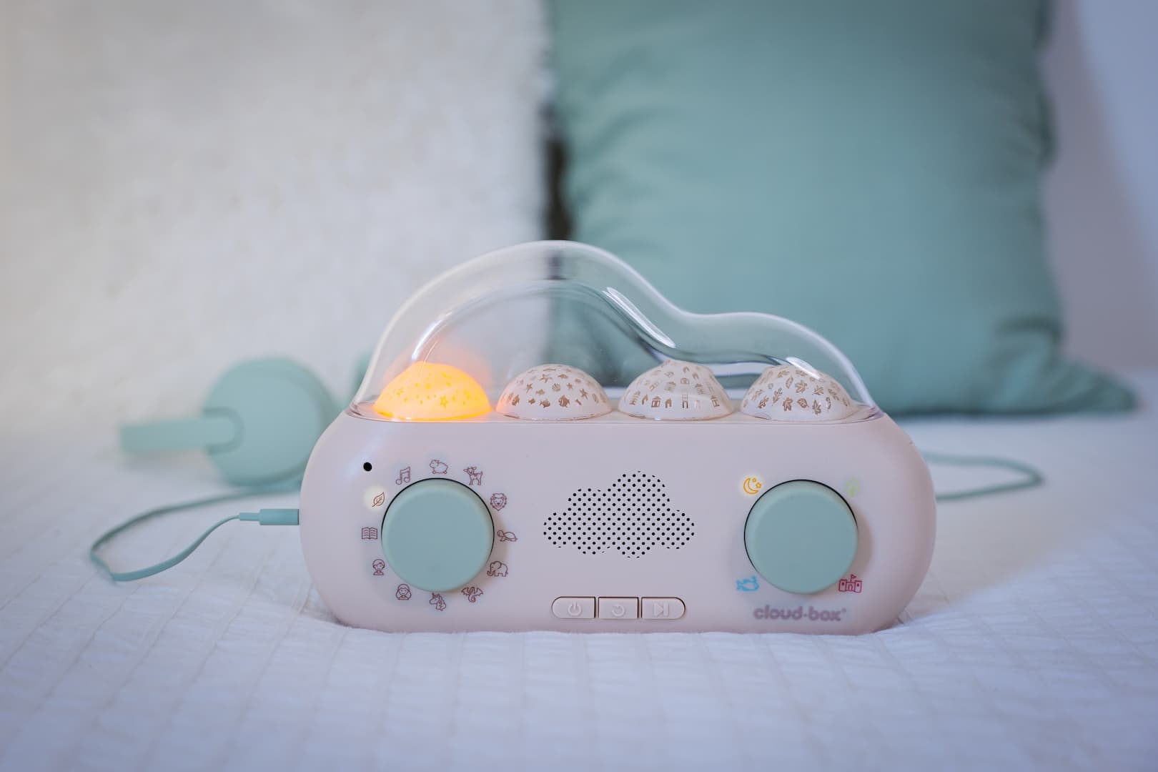 CloudBox™ - Mijn eerste verhalendoos. De unieke verhalenverteller die verhalen, geluiden en lichtprojecties combineert! CloudBox™ is zowel een verhalenverteller als een nachtlampje met projectie en is geschikt voor kinderen van 0-8 jaar.