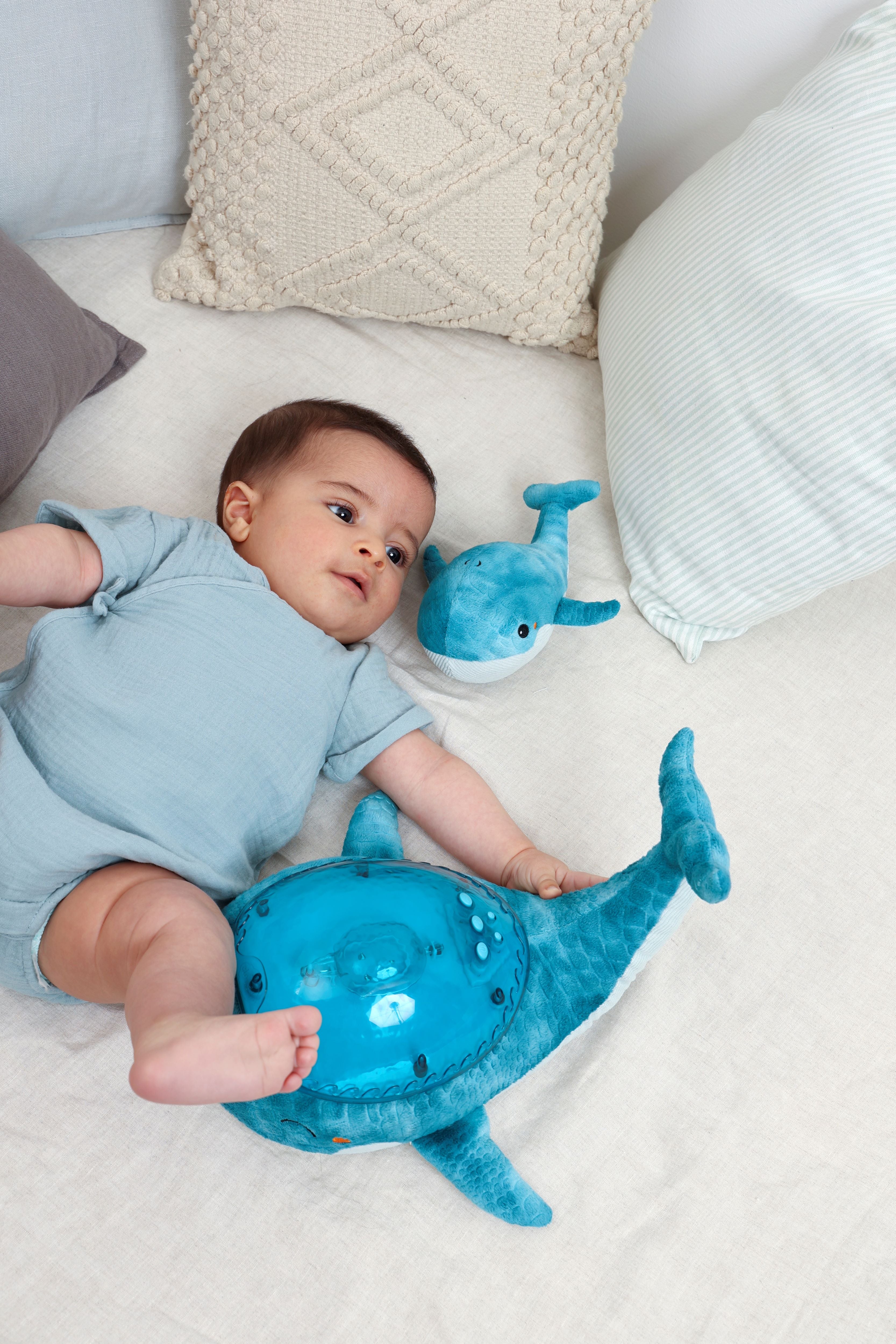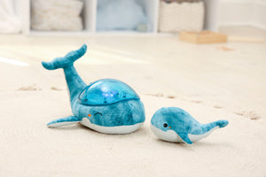 Cloud-B Tranquil Whale Rustgevende Knuffel met geluiden, projectie - Blauw