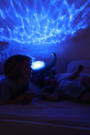 Tranquil Whale™ Familie - Blauw: Laat kinderen in slaap vallen met de kalmerende oceaangolven van Tranquil Whale.