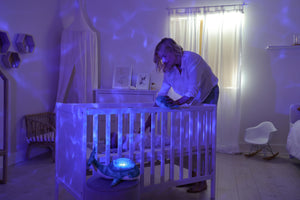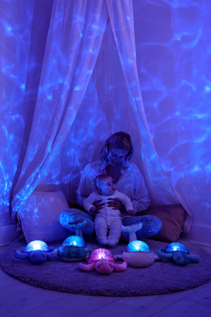 Ontworpen om pasgeboren baby's te kalmeren en kinderen die bang zijn in het donker gerust te stellen. Verander de kamer van je kind in een oase van rust met de Cloud b™ Tranquil Whale™. De pluchen babywalvis maakt een schattig rinkelend geluid als het kind ermee schudt en kan overal naartoe worden meegenomen! Tranquil Whale™ is een geweldige oplossing voor kinderen die bang zijn in het donker. De lichtprojector creëert een sereen onderwatereffect, terwijl de geluidsmachine twee rustgevende keuzes biedt: een zachte melodie of ruisende golven.