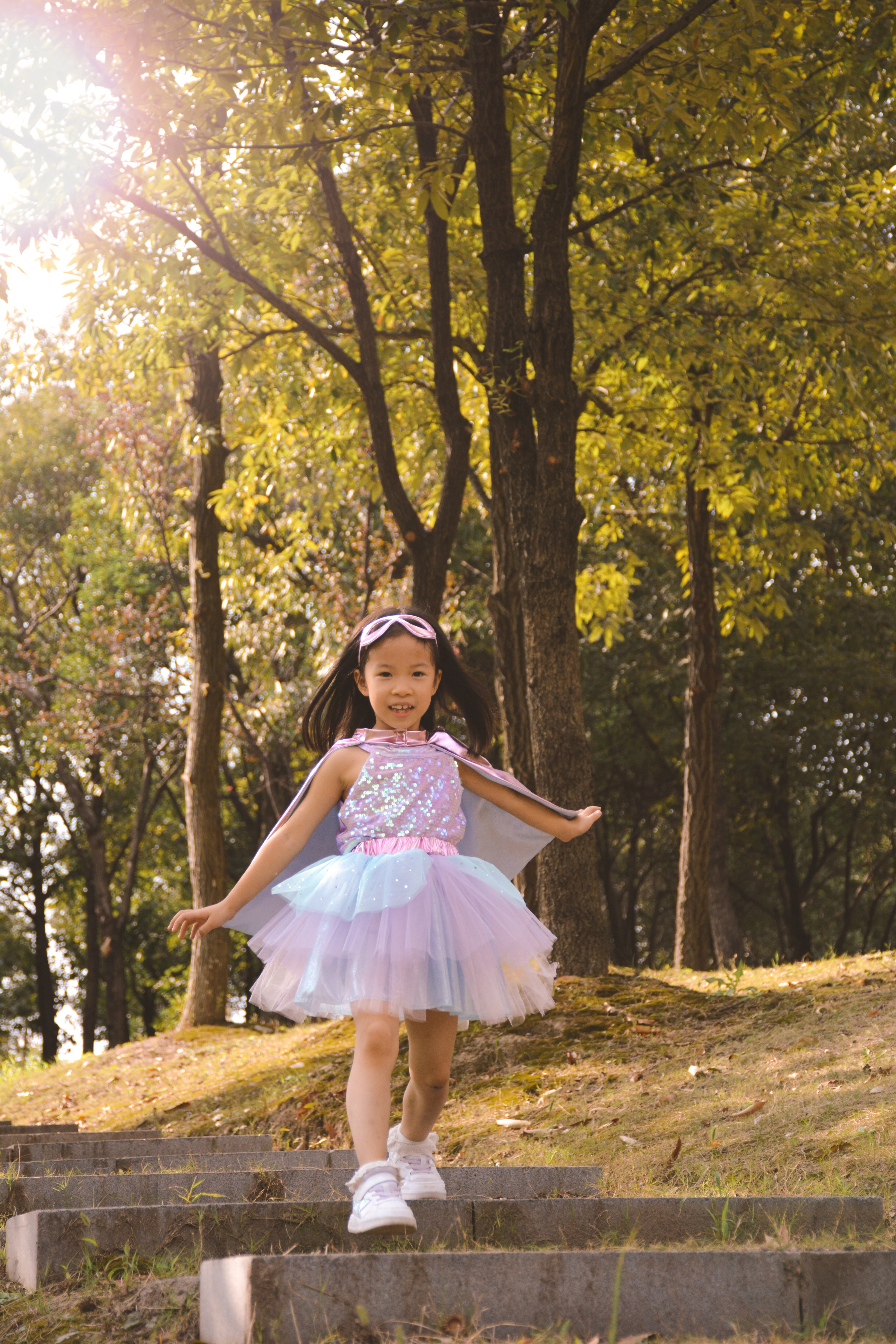 La star du spectacle est le tutu super-duper, doté d'une ceinture rose métallisé et d'une jupe ornée d'étoiles imprimées et de couches de tulle bleu et rose vif. Chaque tourbillon devient un éclat de couleurs éblouissant, transformant votre tout-petit en un super-héros prêt à conquérir n'importe quelle aventure ludique.