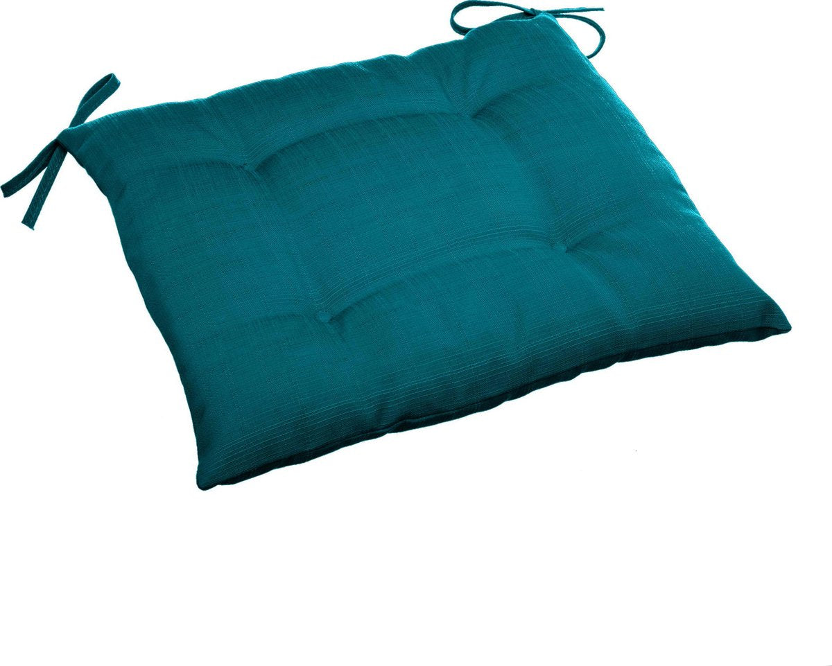 Hespéride Korai Coussin de chaise avec rubans - Déperlant - Déhoussable - 4 boutons - 40x40cm - Bleu canard