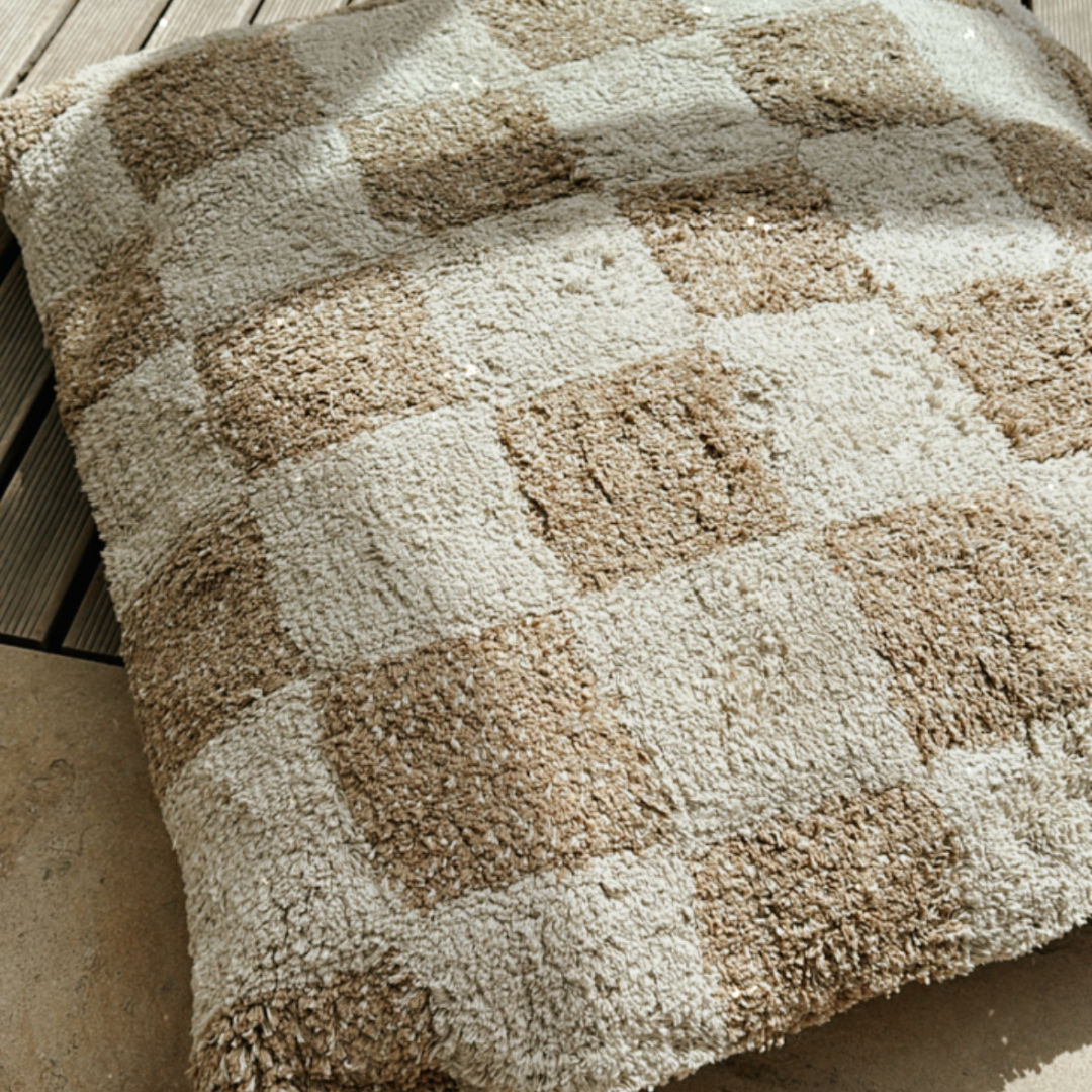 Home & Style Coussin à carreaux 80x80cm - Beige