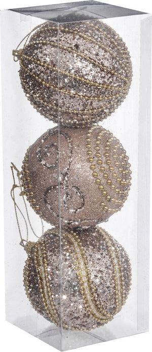 Noël - Boules de Noël - Avec perles - Lot de 6 boules - Pour le sapin de Noël