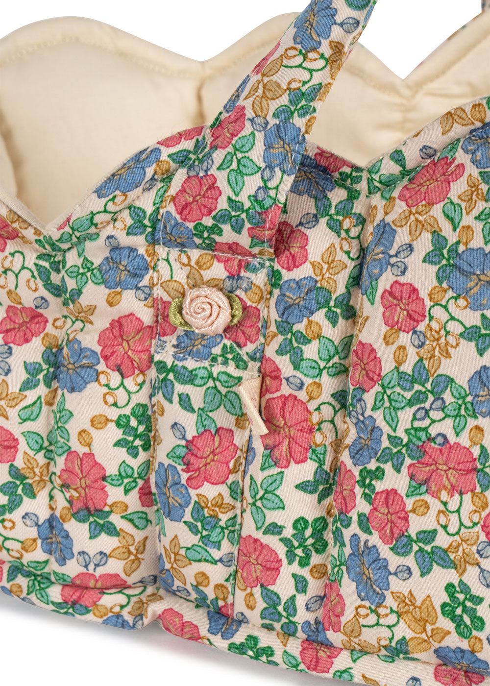 Lift de poupée matelassé de coton 100% biologique avec garniture en polyester 100% recyclée. Conçu avec des sangles de transport pratiques, des tuyaux souples et des pétoncles.