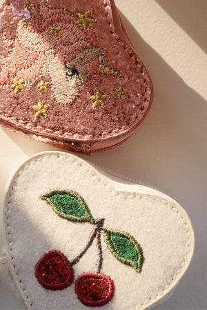 Portefeuille à paillettes avec un bouton avant sur le devant. Se tient facilement dans le sac à bandoulière Love Letter.