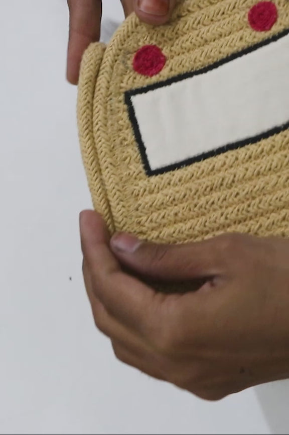 Une version mini de notre seul et unique panier de poulet Charlie ! Fabriqué avec soin à partir de chutes et fait à la main à partir de cordons de coton en miel doux mélangés à des fibres provenant de bouteilles PET recyclées. Mini Charlie le panier de poulet a un bec et des pattes tressées de couleur rose sable et des ailes jaunes. Un panier pratique qui s'adapte à votre étagère et cache bien vos petits trésors.