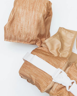 Nos splashers sont fabriqués à partir de polyester recyclé et disposent d'une mousse extra dense et résistante. Il est 100% réglable au dos et offre bien plus de stabilité dans l'eau que les gilets classiques grâce à l'attache des bras. De cette manière, l'enfant est entièrement soutenu et maintenu en position verticale, évitant les inclinaisons et les montées du gilet sans avoir à porter une sangle entre les jambes, évitant ainsi cet inconfort. Norme : EN13138-1