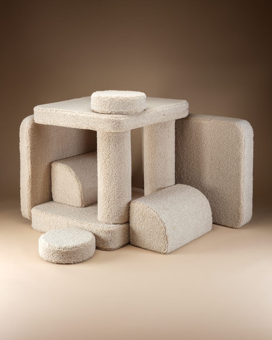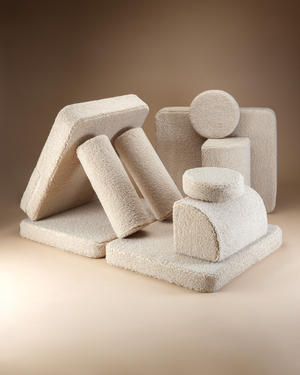 Le canapé Wigiwama se compose de 9 parties - deux coussins d'assise, un grand coussin d'assise, deux coussins triangulaires comme dossier, deux coussins à roulettes comme accoudoir et deux coussins ronds - et offre une combinaison parfaite avec des possibilités illimitées de jeu imaginatif et de détente.