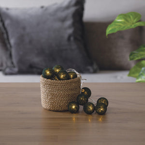 Atmosphera LED Lichtslinger Folk balletjes groen - Lichtslingers katoen - Cotton ball - 16 Ballen - Dia 3.5 cm - Guirlande