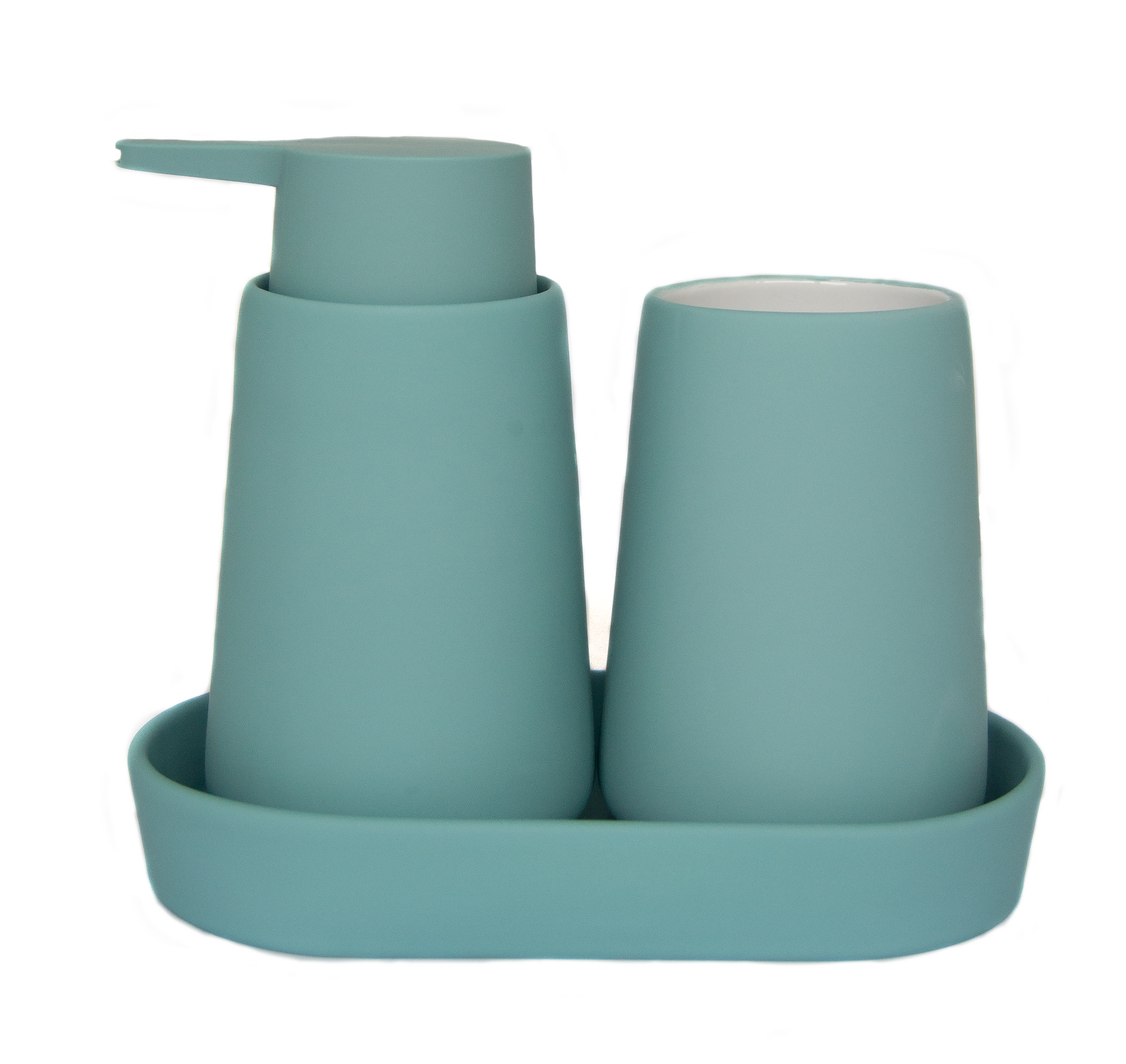 De 5Five Badkamerset Cocoon is een professionele en verfijnde set badkameraccessoires met een dispenser voor vloeibare zeep met een handige drukpomp, een beker en een dienblad. Deze set is vervaardigd met een stijlvolle matte afwerking en levert alles wat je nodig hebt om een vleugje moderne elegantie toe te voegen aan je inrichting.
