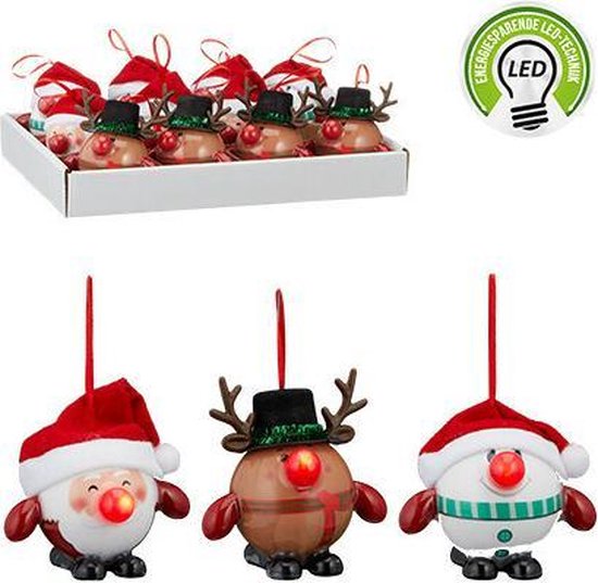 Kerstballen set met LED 3 stuks - Hangdeco - Kerstman - Sneeuwpop - Rendier - Kerstversiering - Batterijen inclusief