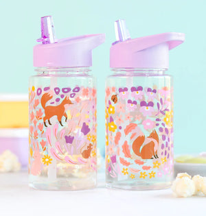 De transparante drinkfles met bloemen en vosjes is ideaal om mee te nemen naar school. De drinkfles voor kinderen heeft een inhoud van 450 ml, is gemaakt van Tritan en lekt niet. Maak de schoolset compleet met een bijpassende etui, lunch box en rugzak met bloemen.