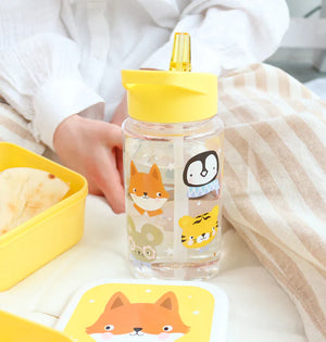 Transparante drinkfles met dierenvriendjes is ideaal om mee te nemen naar school. De drinkfles voor kinderen heeft een inhoud van 450 ml, is gemaakt van Tritan en lekt niet. Maak de schoolset compleet met een bijpassende etui, lunchbox en rugzak met dierenvriendjes.