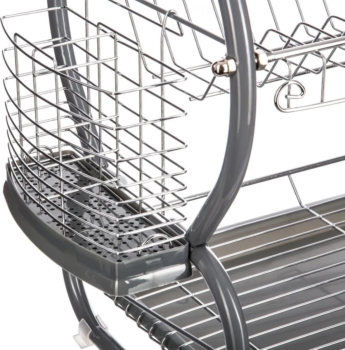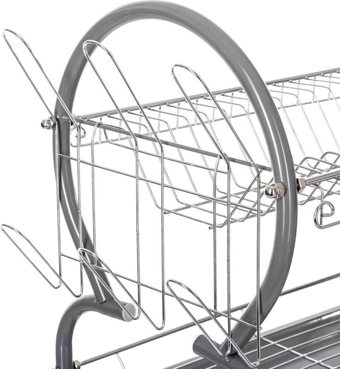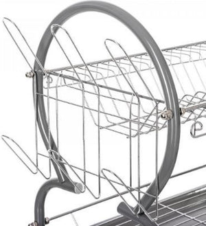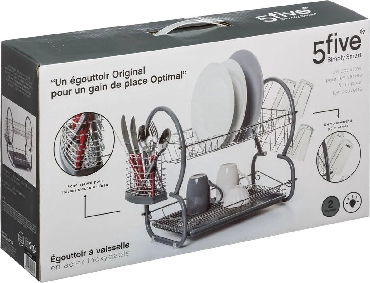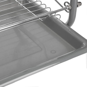 Afdruiprek met lekbak - Afwasrek - Afdruiprek met twee verdiepingen - Afdruiprek met een Bestekmand en Glazenhouder - Grijs - Praktisch - Stijlvol -
