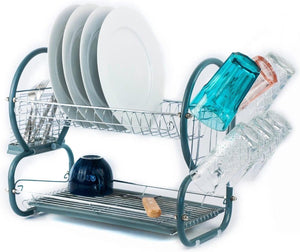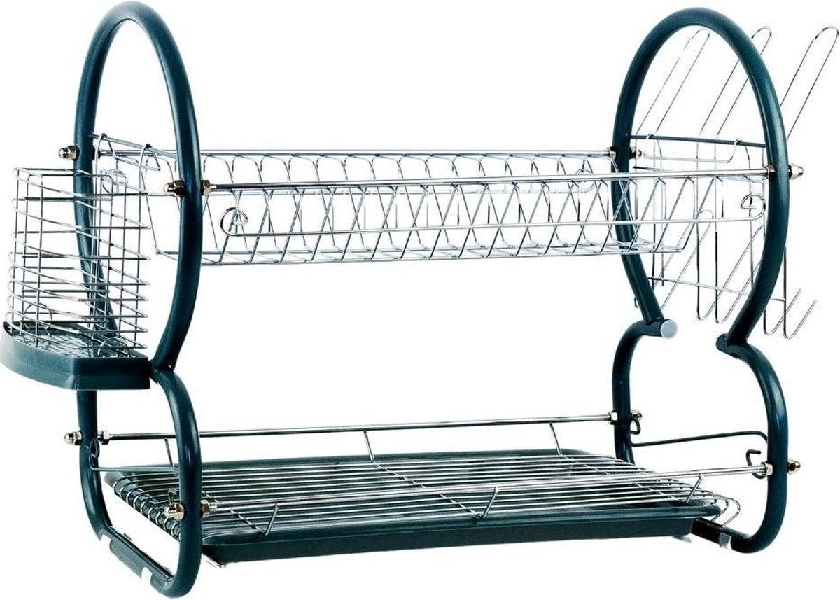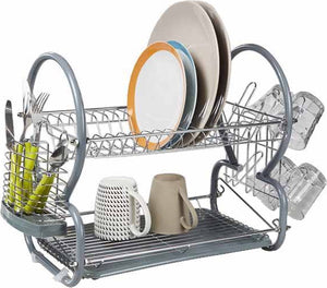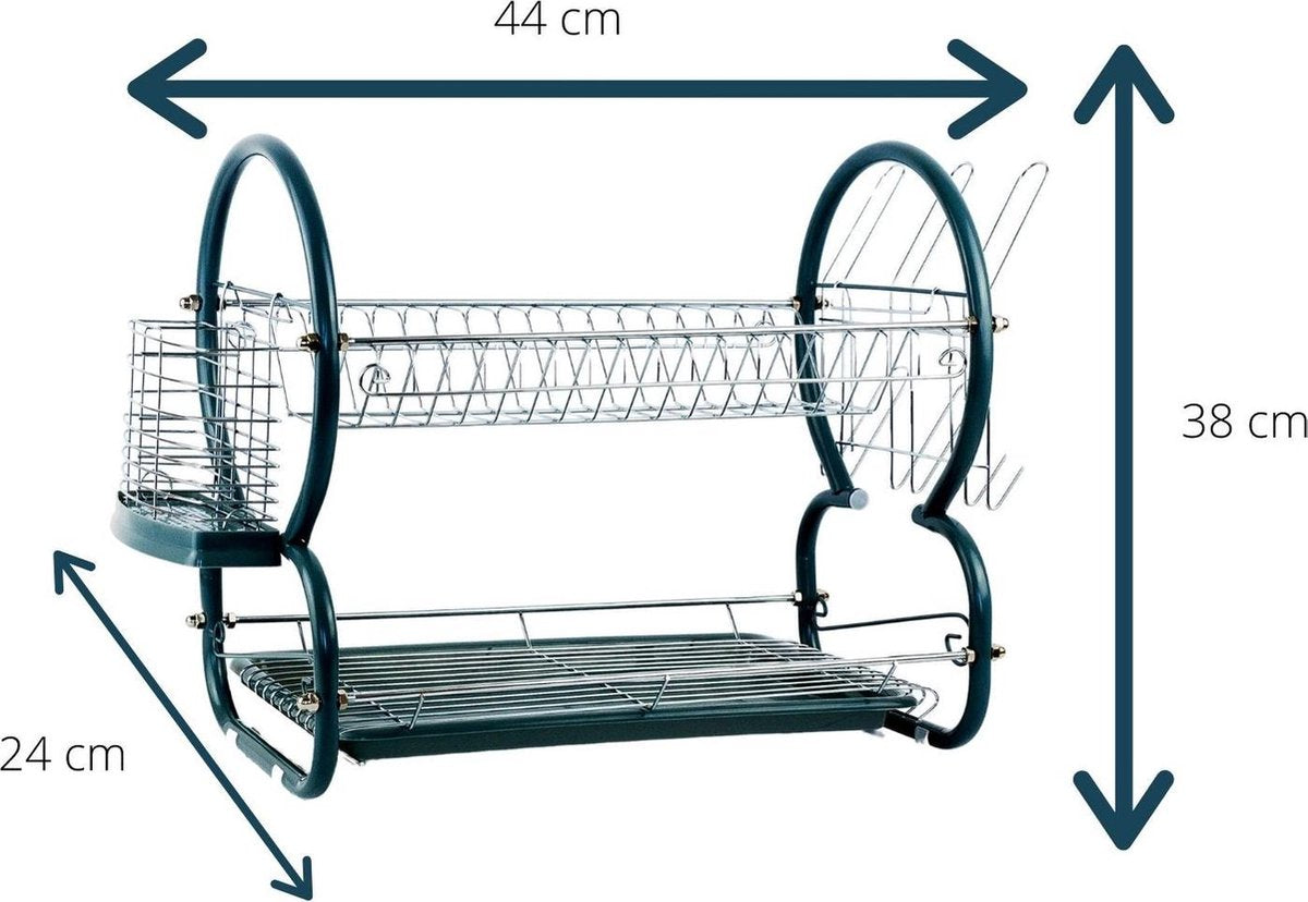 Bespaar tijd en energie met dit praktische 2 laagse afdruiprek met aparte bestekbak en glazenhouders.