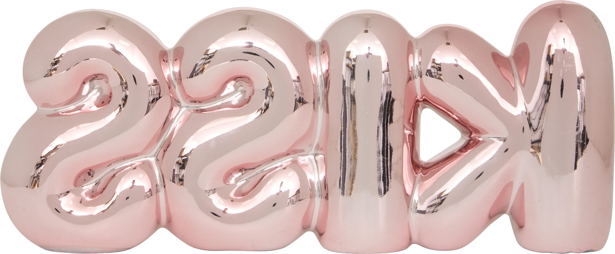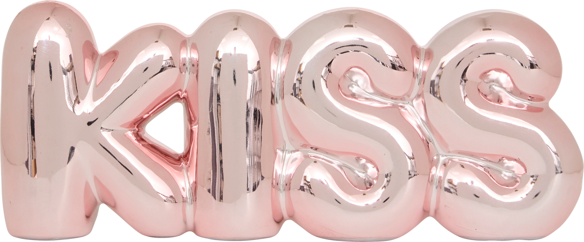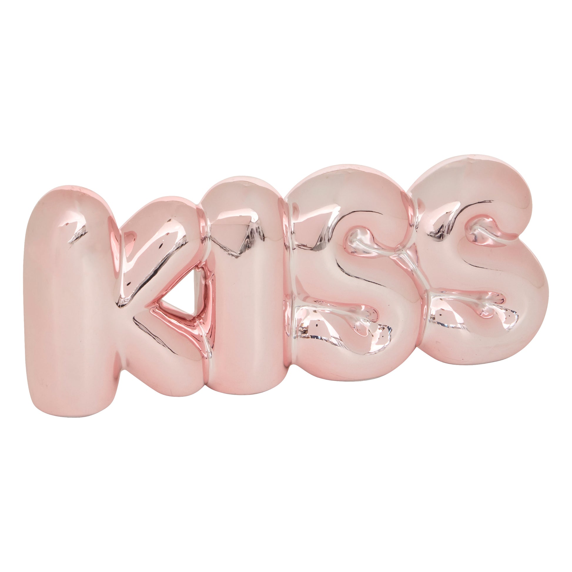 Voeg een speels en romantisch accent toe aan je interieur met dit glanzende decoratieobject in de vorm van het woord "KISS".