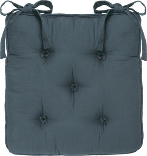Atmosphera Deluxe Stoelkussen 40x40x8cm met lintjes en 5 knopen - Donkerblauw