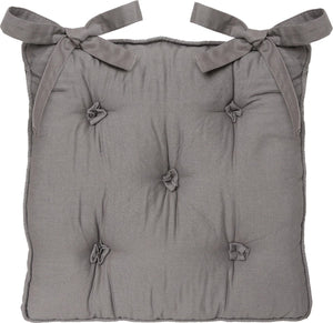 Atmosphera Deluxe Stoelkussen 40x40x8cm met lintjes en 5 knopen - Grijs