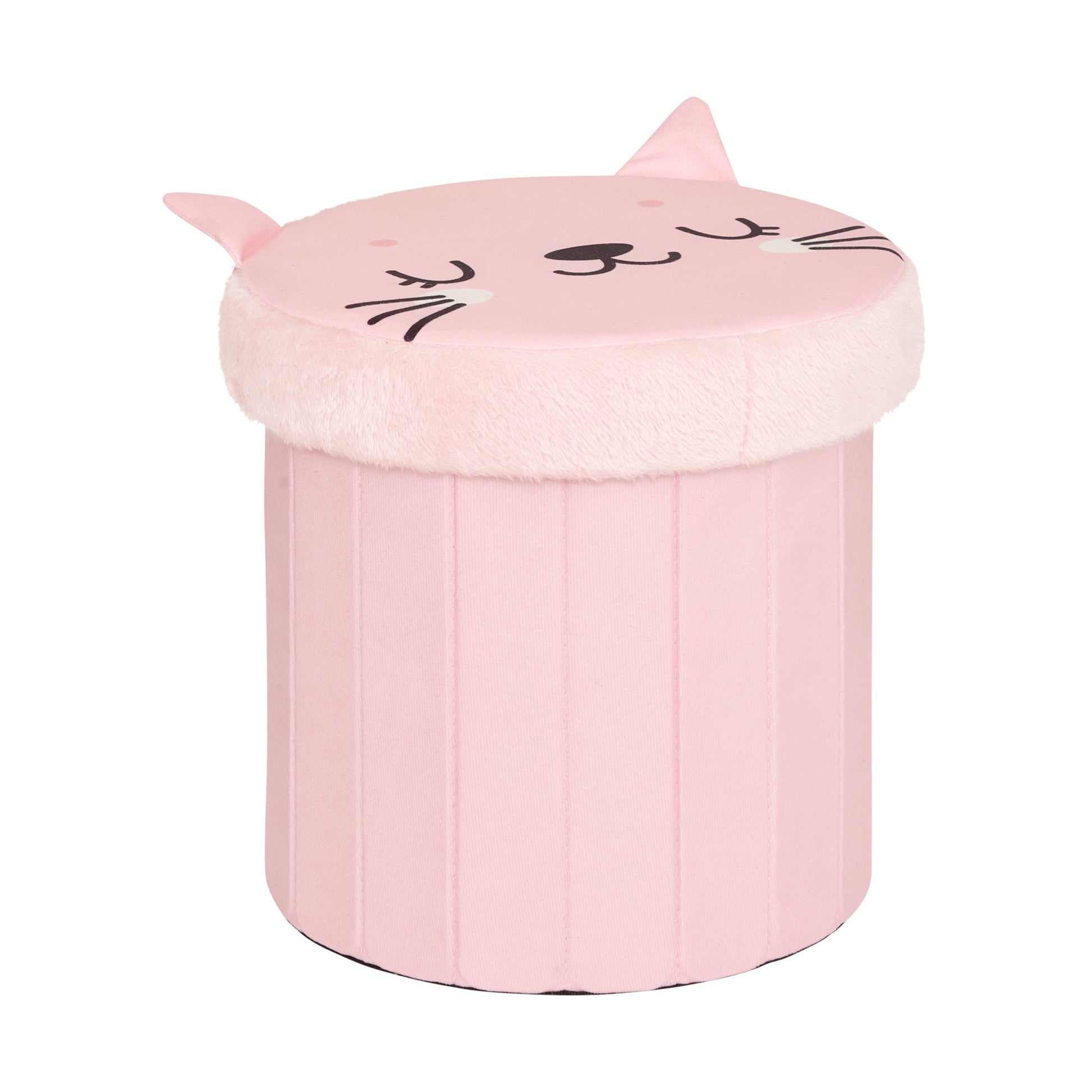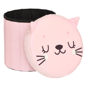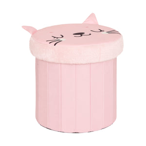 Atmosphera Kat Opvouwbare Poef - Opberger - Ø30xH38cm - Roze