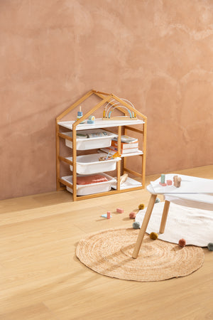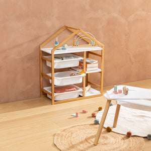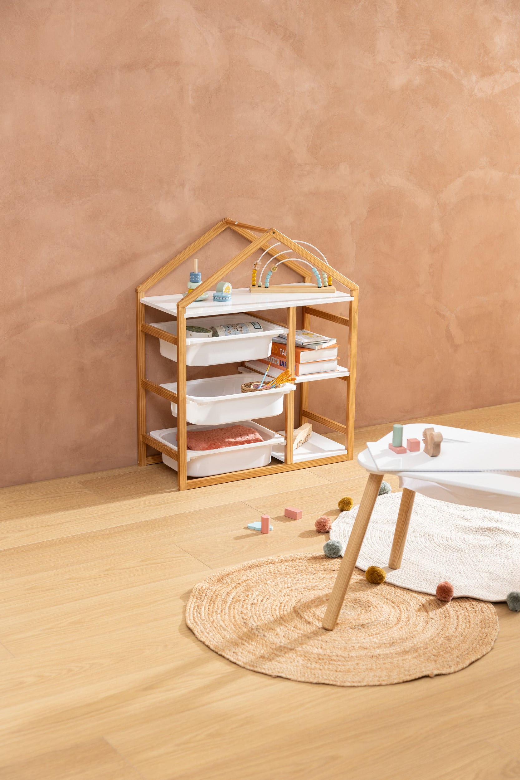 Houd speelgoed en knutselspullen netjes geordend met dit speelse opbergmeubel in huisjesvorm. Met ruime bakken en open vakken is opruimen kinderspel – ideaal voor elke kinderkamer of speelhoek! 🧸🏠