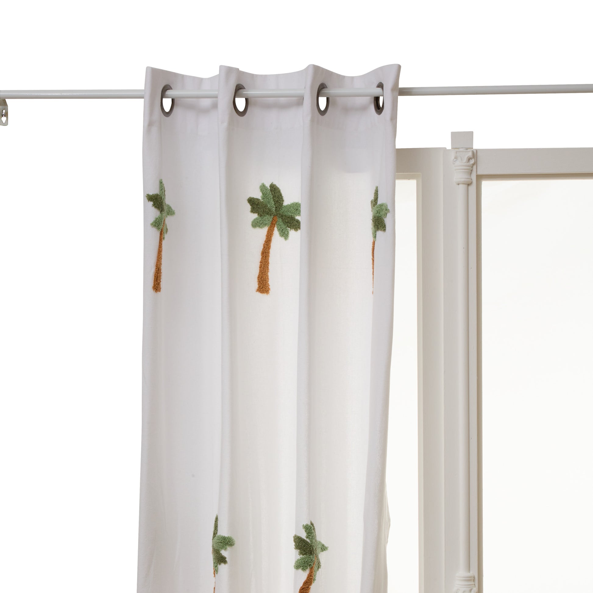 Atmosphera Kids Palmbomen Gordijn 140x260cm - Kant en klaar met ringen - Gordijn raambekleding - Wit
