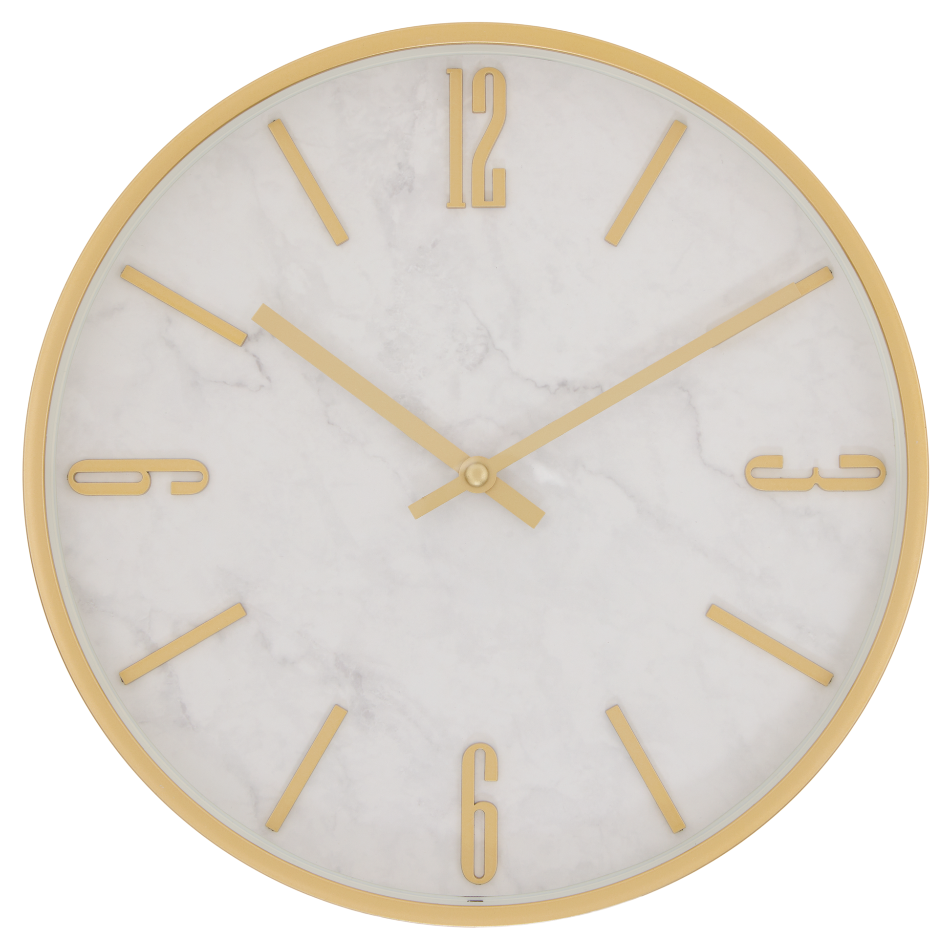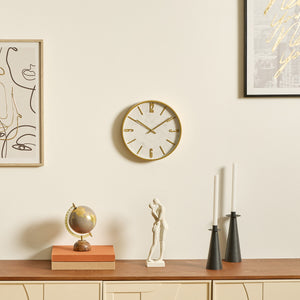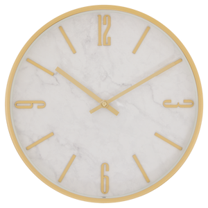 De Nathalie-klok heeft een origineel en modern ontwerp dat uw muren zal verfraaien. De gouden metalen wijzerplaat heeft namelijk een marmerachtige achtergrond. De Nathalie-klok is verkrijgbaar met Romeinse cijfers of klassieke cijfers. Hang de Nathalie-klok boven een Atmosphera-rotan console om uw interieur een bohemien tintje te geven.