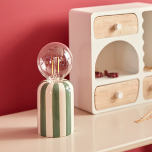 Geef je interieur een speelse twist met deze gestreepte tafellampen in vrolijke kleuren.