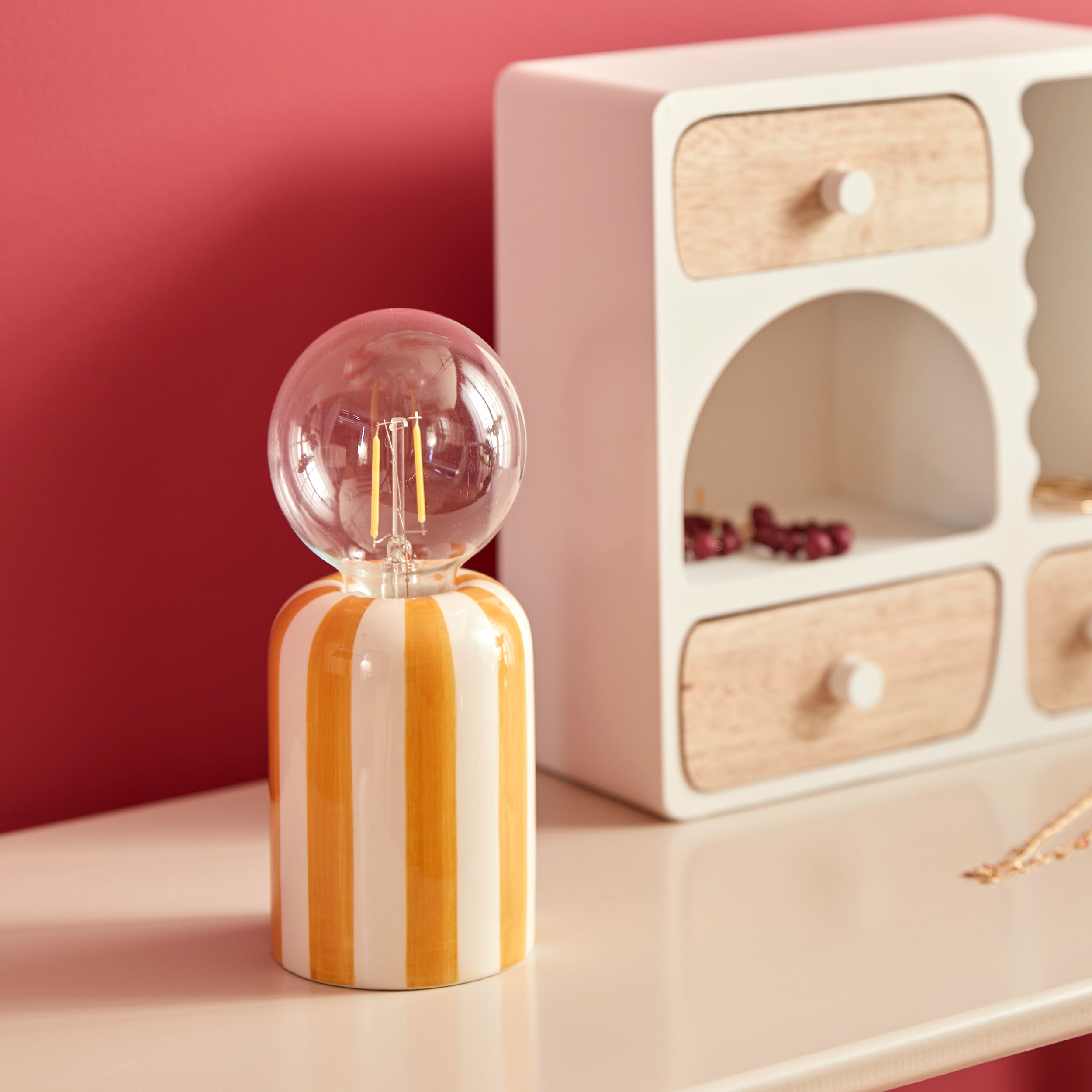 Geef je interieur een speelse twist met deze gestreepte tafellampen in vrolijke kleuren.