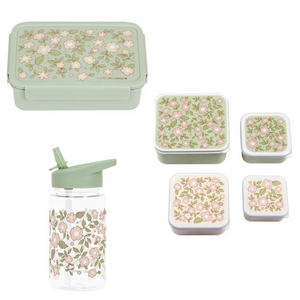 BEAU by Bo A Little Lovely Company Back to school set - Drinkfles/4 Snackdozen/Bentobox - Bloesems Saliegroen