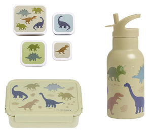 BEAU by Bo A Little Lovely Company Back to school set - Drinkfles RVS/4 Snackdozen/Bentobox - Dinosaurussen