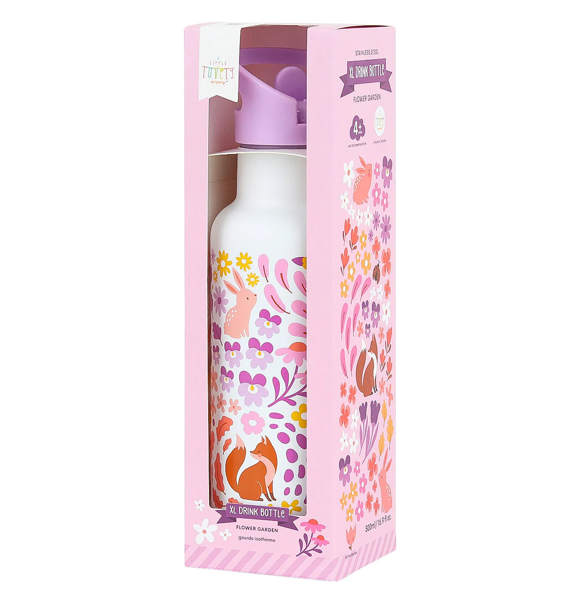 De extra grote RVS-drinkfles met leuk design is ideaal om mee te nemen naar school. De drinkfles voor kinderen is dubbelwandig en hierdoor een ideale thermosfles. De 500 ml drinkfles wordt standaard geleverd met een drinktuit en een rietje voor koude dranken. Een RVS draaidop voor warme dranken is apart verkrijgbaar.