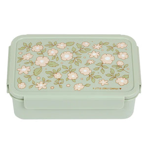 Ruime bentobox met saliegroene bloemen print. De luchtdichte click & close deksel en uitneembaar bento bakje met twee vakken zorgt voor een perfect georganiseerde lunch. Een ideale trommel voor een verse en gevarieerde lunch op school of onderweg.