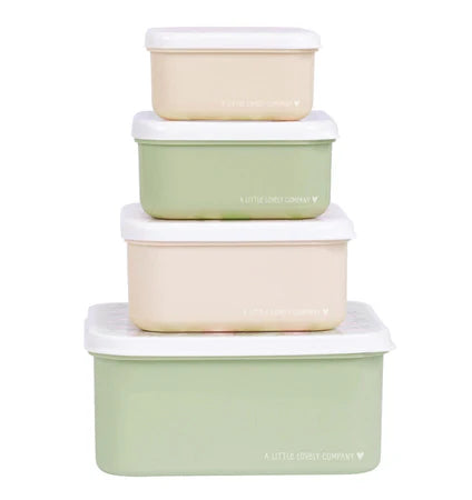 Afmetingen: Lunch box 15,8x14x7cm | Grote snack box 12x12x5,5cm | Middelgrote snack box 10,5x10,5x5cm | Kleine snack box 9x9x4,5cm