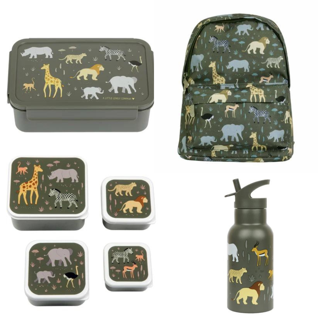 BEAU by Bo A Little Lovely Company Back to school set - Rugzak/Drinkfles RVS/4 Snackdozen/Bentobox - Savanne