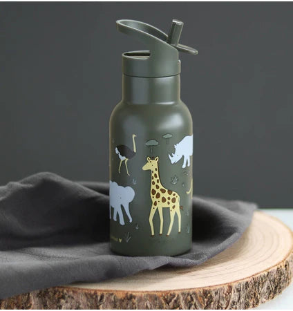 De RVS-drinkfles met is ideaal om mee te nemen naar school. De 350 ml fles wordt standaard geleverd met drinktuit en rietje voor koude dranken. Een RVS draaidop voor warme dranken is apart verkrijgbaar.