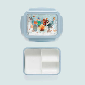 BEAU by Bo Petit Monkey Back to School set - Bentobox + Snackdozen + Drinkfles Woodland/Bonfire - Stone Blue/Animals