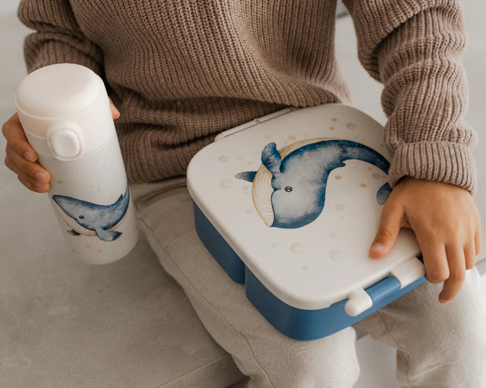 Bundel Petit Monkey Back to School set Whale - Bentobox + Thermofles - Blauw