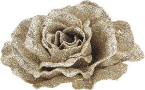 Cosy & Trendy Kerst - Roos clip - Set van 2 - Glitter - Roze - Champagne - D10cm - Kerstboomdecoratie - Clips