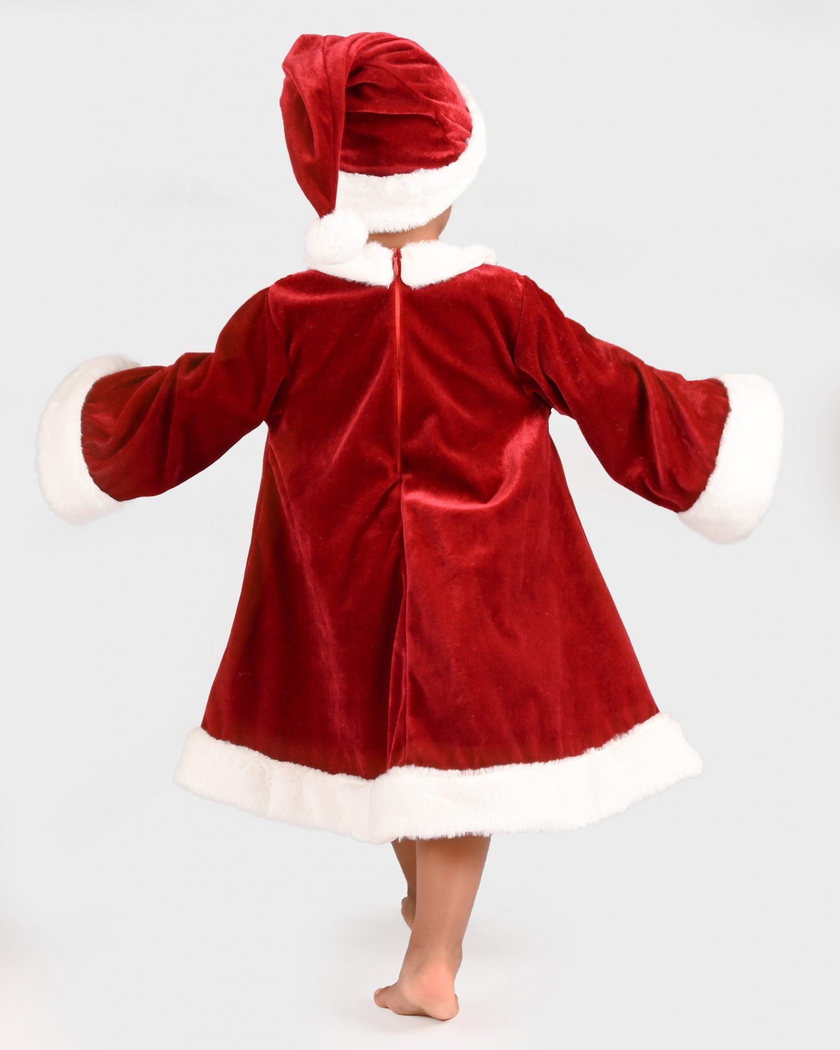 Klaar om de charmantste helper van Kerstmis te zijn? Of het nu tijd is voor kerstknutselwerkjes, een kerstmarkt of een gezellige avond, deze jurk is een logische keuze voor kleine Kerstmannen. De fluwelen Kerstmanjurk is afgezet met zacht, wit imitatiebont en versierd met grote, pluizige knopen. En natuurlijk is er ook een Kerstmanmuts bij!
