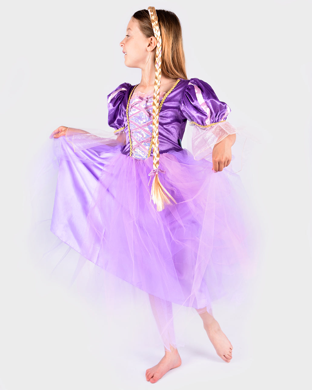 Den Goda Fen Verkleedkledij Rapunzel - Jurk met lange vlecht - 98-104cm - 2-4 jaar - Paars