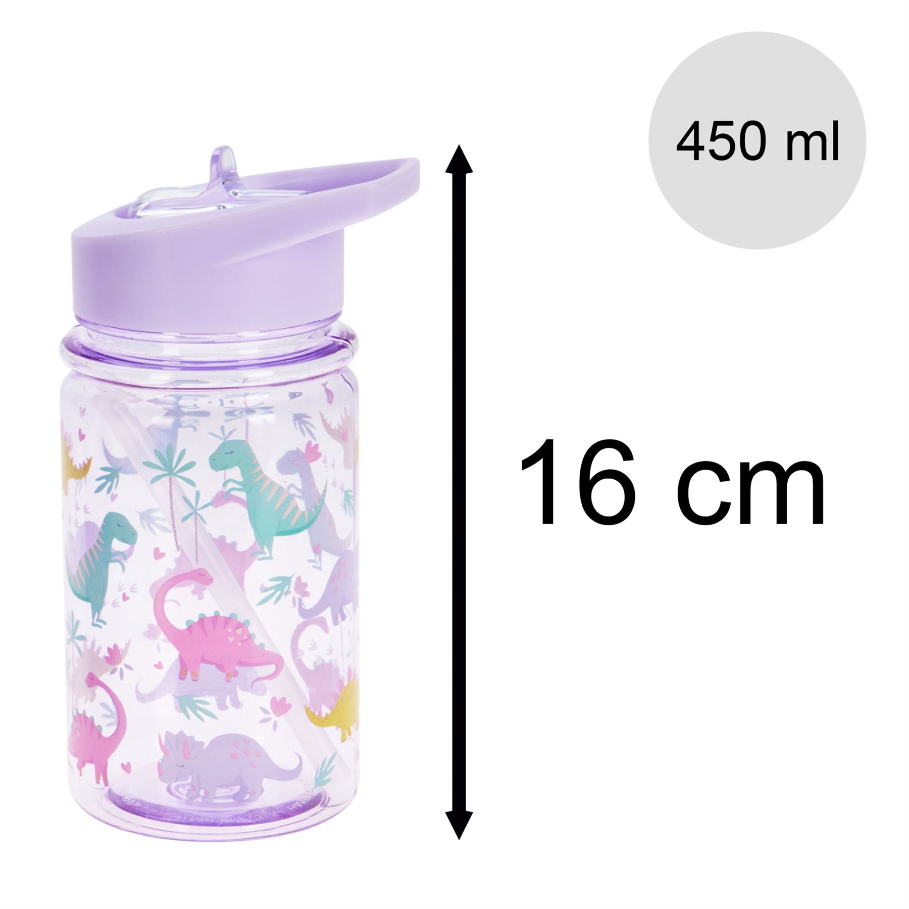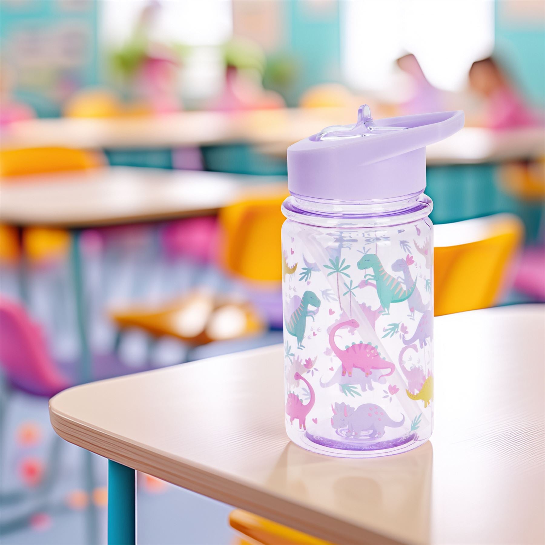 Roze, paars en prehistorisch leuk! 🦕💜 Deze kindvriendelijke drinkfles met vrolijke dino's en handig rietje is perfect voor school, uitstapjes of thuis. Lekvrij, stevig en super schattig!