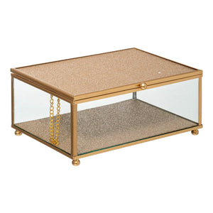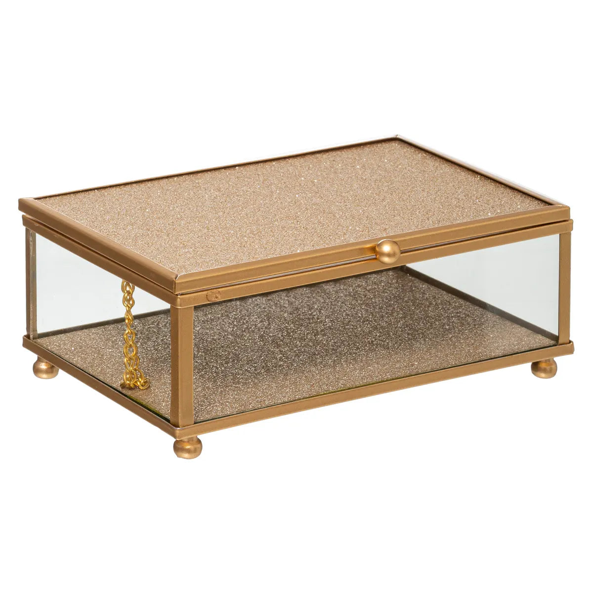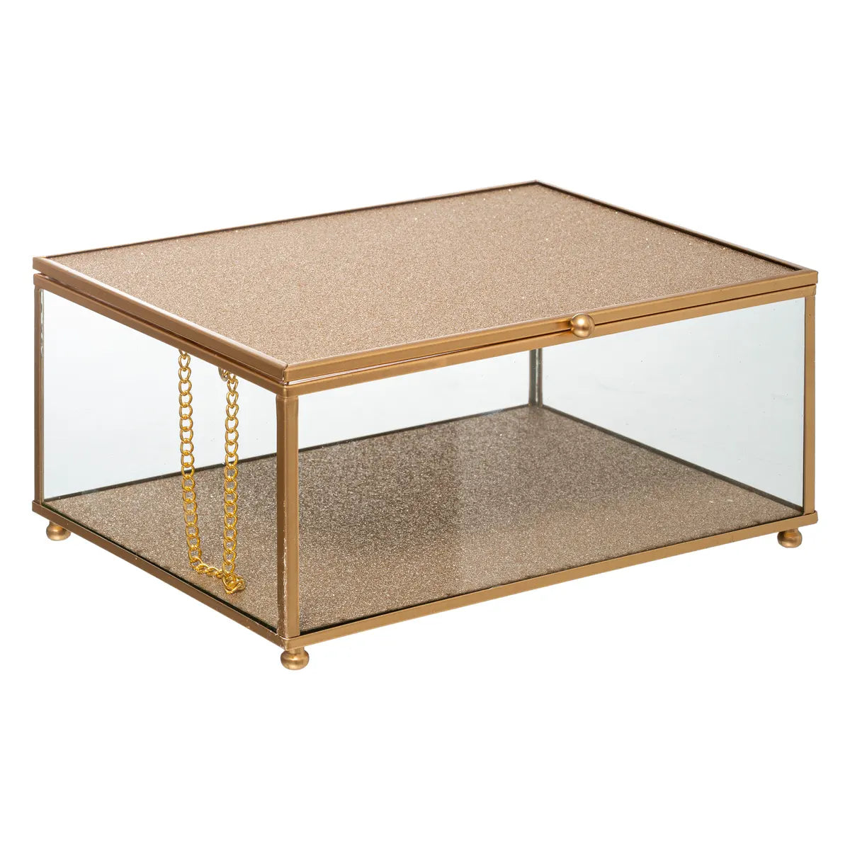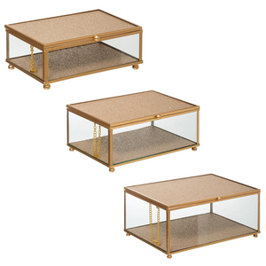 Deze luxe set van 3 gouden glitter juwelendoosjes voegt een vleugje glamour toe aan je sieradenopslag. Perfect voor het veilig opbergen van je ringen, kettingen en oorbellen, terwijl ze je kaptafel of kast verfraaien met een sprankelende, elegante uitstraling. Ideaal als cadeau of om je eigen sieraden op stijlvolle wijze te organiseren!