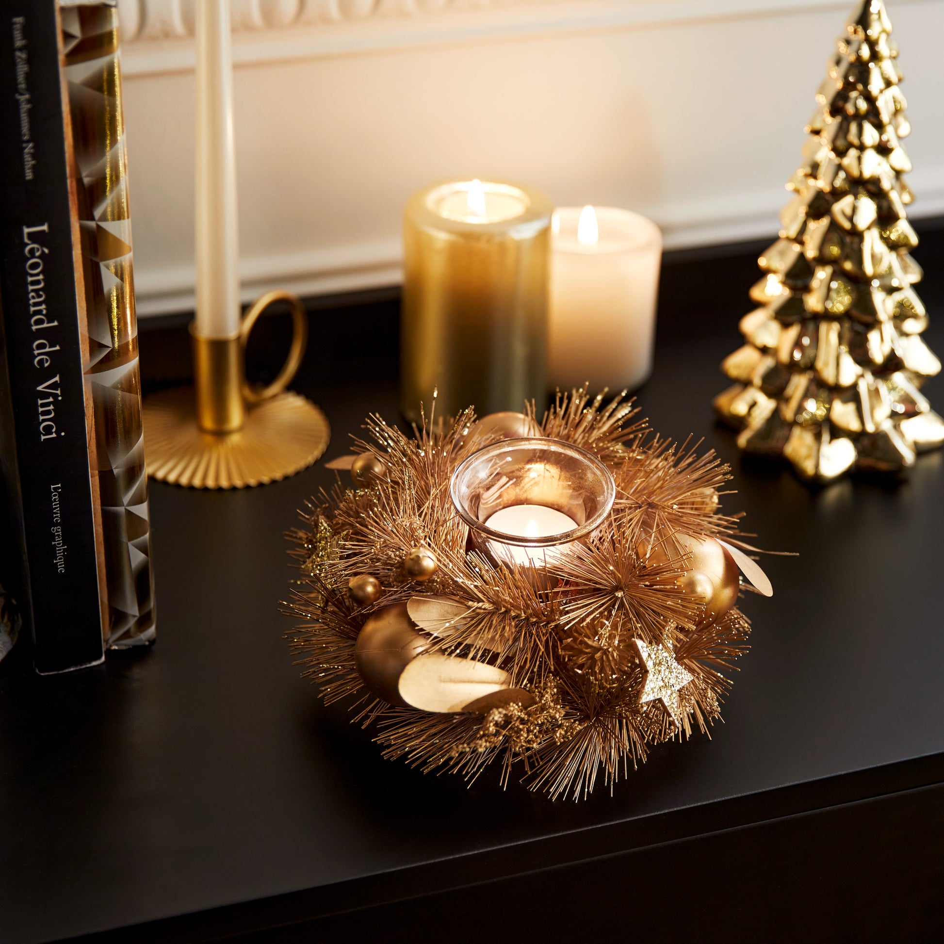 Fééric Lights and Christmas Theelichthouder Krans - Ø19xH8cm - Goud