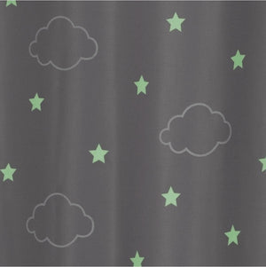 Geef de inrichting van uw kinderkamer een vrolijke noot met onze vrolijk gekleurde verduistergordijnen. De prachtige prints zullen elk kind bekoren. Op de gordijnen staan schattige wolken en sterren. de sterren verlichten in het donker. GLOW IN THE DARK
