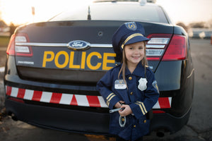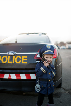 Maak je klaar voor actie met onze Politie Kostuum Set - het perfecte ensemble om de heldhaftige avonturen van je kleintje te inspireren! Deze dynamische set bestaat uit: Jas, muts, handboeien, walkie talkie, badge en naamplaatje, zodat je kind zich een dapper lid van het korps voelt.