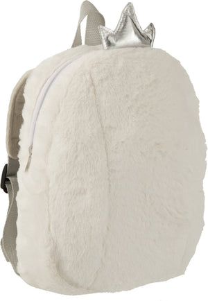 J-Line Rugzakje Kroontje 28x7x34cm - Pluche Wit/Grijs/Zilver
