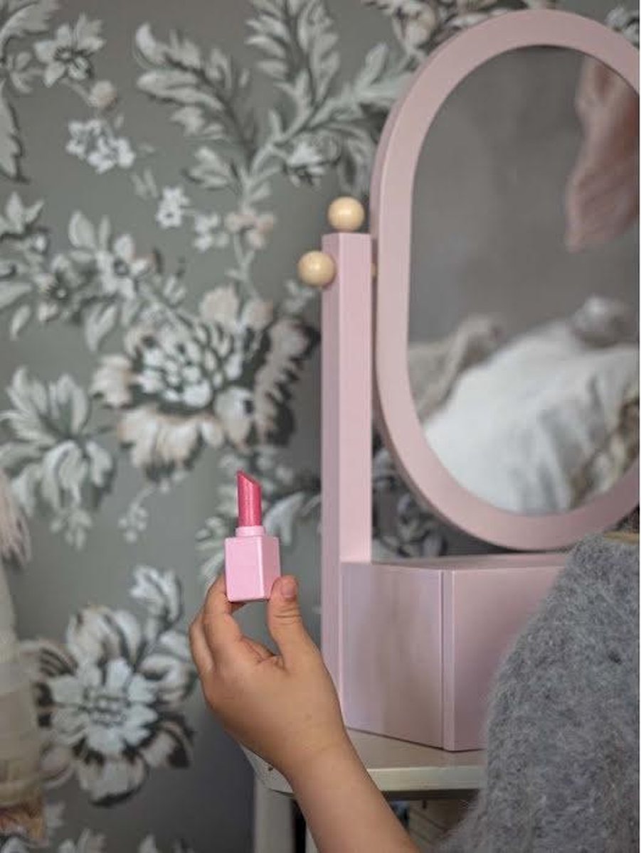 Jabadabado Houten Kaptafel met Make-up spiegel voor kinderen - Vrijstaand ovaal - Roze